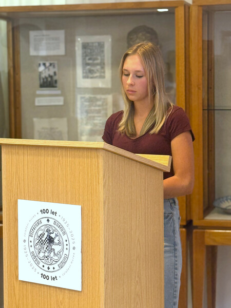 Za naši školu byla na akci přítomna ředitelka školy paní Blanka Gaizurová a mnohé z vás možná napadá, co měla škola společného s účastí hasičů v protifašistickém odboji. V rámci vzpomínkové akce byla představena osobnost pana Bohuslava Kříže, který byl člen hasičstva a Sokola a mimo jiné ředitel Hospodářské školy, která sídlila v prostorách naší budovy, která se aktuálně rekonstruuje.