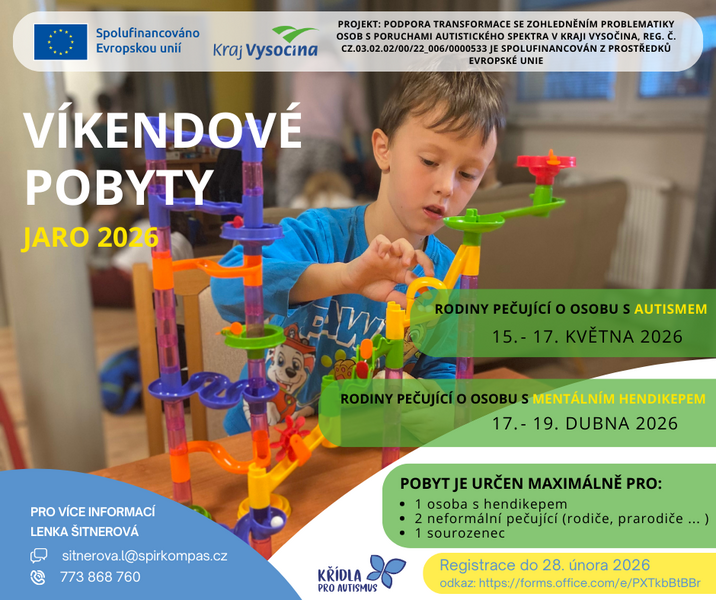 15. – 17. května 2026 rodiny pečující o osobu s poruchou autistického spektra