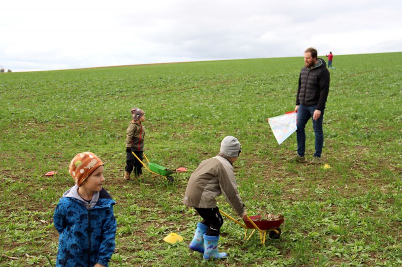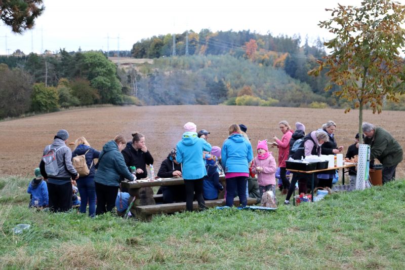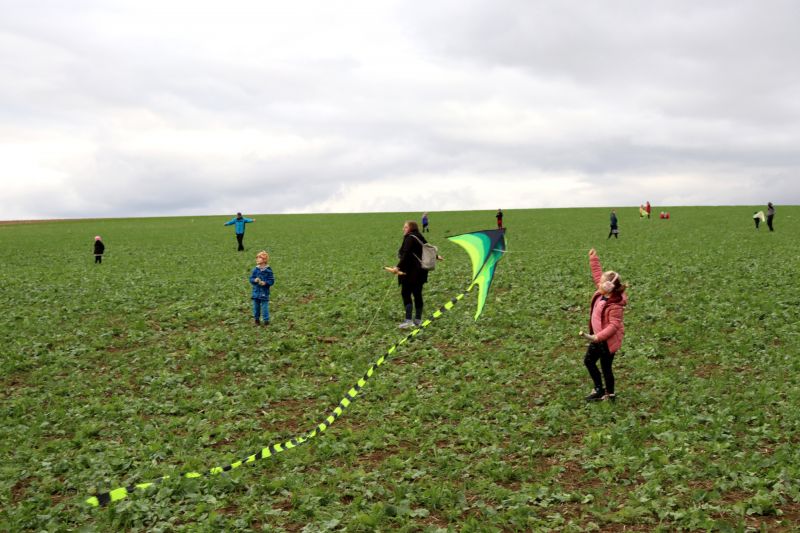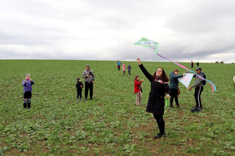 Vítr foukal tak akorát, aby draci mohli vzlétnout do výšin, ale aby účastníkům nebyla moc velká zima. Ohřát jsme se ostatně mohli u ohýnku, na kterém si všichni s radostí opekli špekáčky. Na nebi jsme pozorovali spoustu draků různých barev, velikostí i tvarů. Vyhlašovaly se kategorie nejvýše a nejdéle letajících draků a výherci se mohli radovat z milé odměny. Nechyběly ani jednoduché úkoly na zahřátí - slalom s kotoučem, trefování šiškami do koše a chytání rybiček.